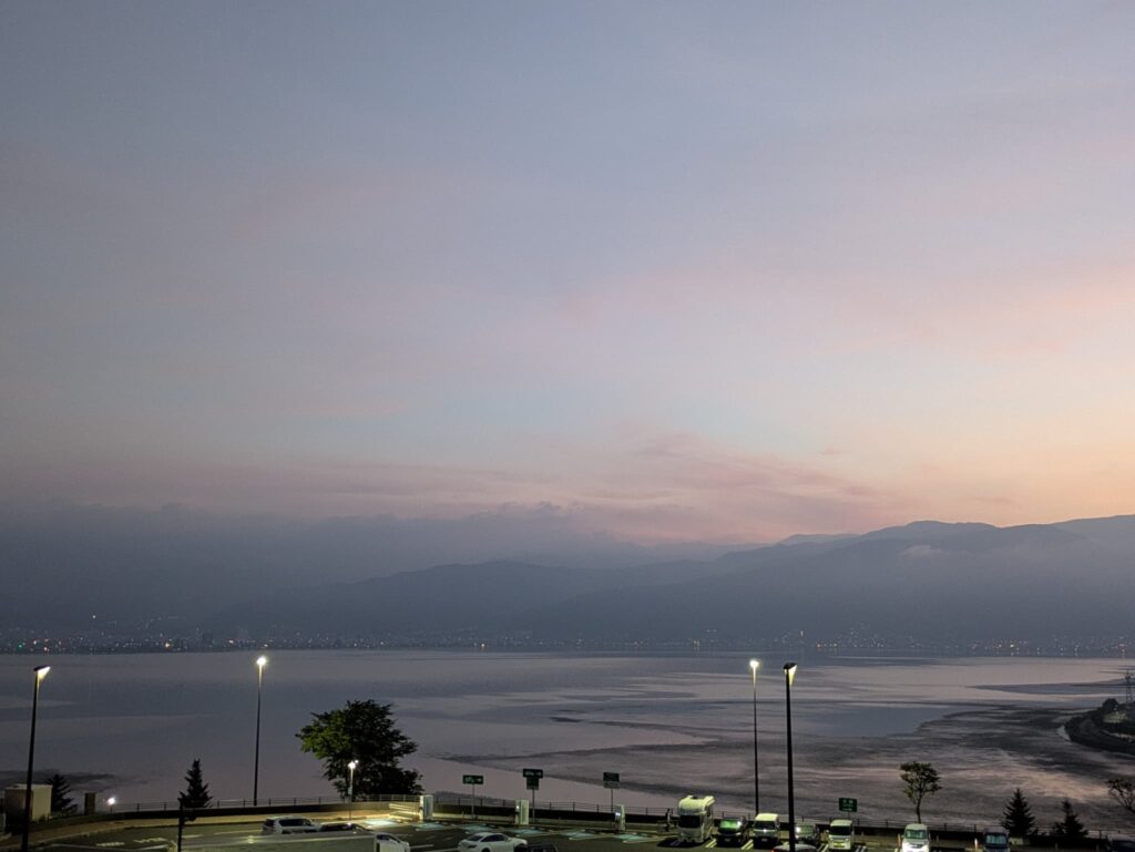 途中🚻休憩に寄った諏訪湖SAで、夜明け近いマジックアワーの諏訪湖も見られて、もう今回の旅が素晴らしいものになる予感しかしませんでした。